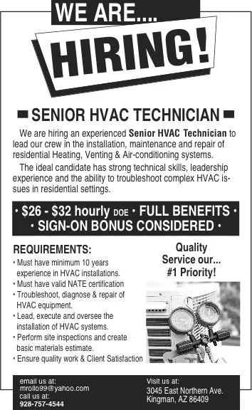 We are Hiring! HVAC/Service Technician